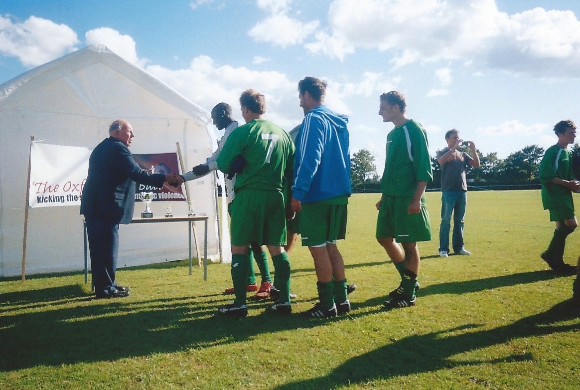 In its second year, the project was extended to a two day event which additionally included a men’s five-a-side tournament held again at Marlborough School on 28 and 29 July 2007. Stephen coached a men’s team for this event, involving residents from a local hostel. The ‘was it my fault?’ exhibition in Oxford Town Hall was organised to be open at the same time as ‘The Oxfordshire Ball’ in July 2007.