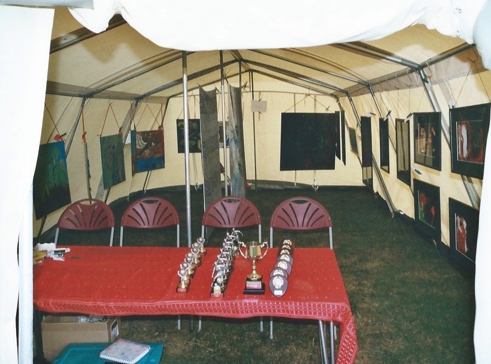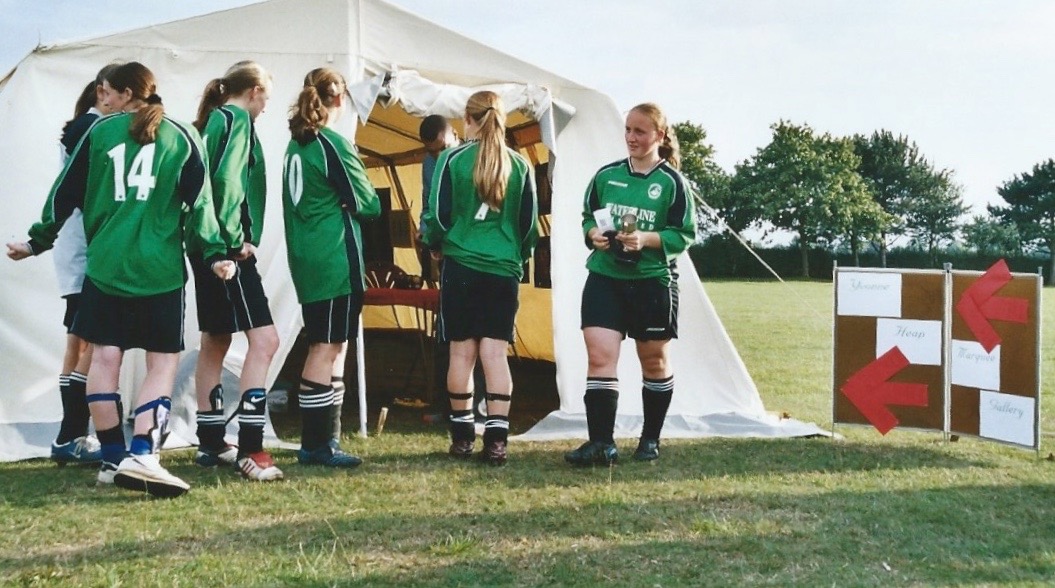 In its first year, it was a women and girls’ five-a-side football tournament and art exhibition, which was held at the Marlborough School, Woodstock, on Saturday 22 July 2006. The day was used to raise awareness about domestic abuse. The ‘Yvonne Heap Marquee Gallery’*, displayed some of my own artwork alongside paintings created by women who resided in the Oxfordshire Women’s Aid refuges. Some of the art was auctioned on the day. The project gained front page coverage in the Oxford Mail (10 June 2006).